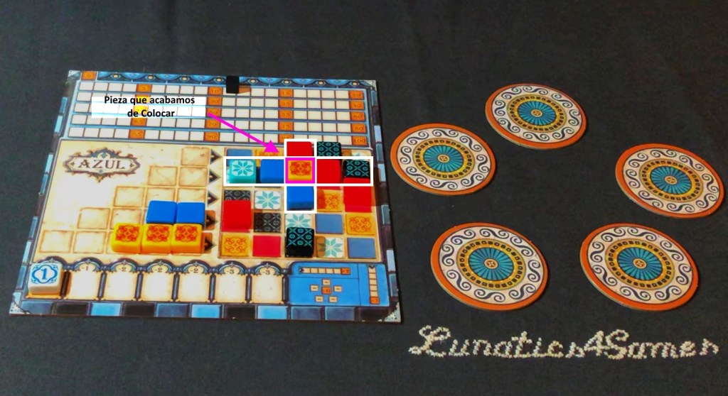Cogeremos los azulejos de la factoría y los llevaremos al tablero y ahí los colocaremos en una de las cinco filas que hay, lo importante aquí son las normas puesto que a la hora de colocar hay que tener en cuenta las siguientes normas: