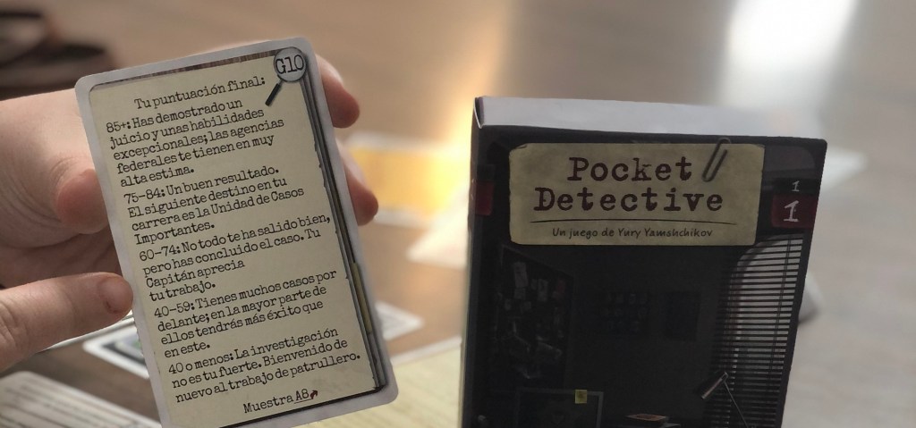 Como podéis comprobar, es un juego con mecánicas muy sencillas. Es un juego muy dependiente del idioma ya que todas las cartas vienen con bastante texto para meternos en la piel de esos investigadores y de todo lo que van encontrando. Y claro, no es un juego que tenga rejugabilidad ya que, una vez jugado el Caso, resuelto correctamente o no, ya sabremos exactamente qué es lo que pasó y por tanto, pierde toda emoción.