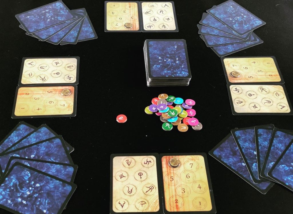 – Se coloca el mazo de Necronomicon al alcance de todos y se revela la primera carta dejándola boca-arriba junto al mazo en lo que será la «zona de descartes».