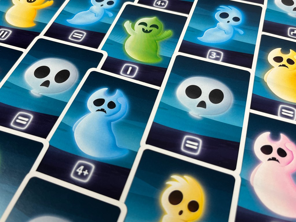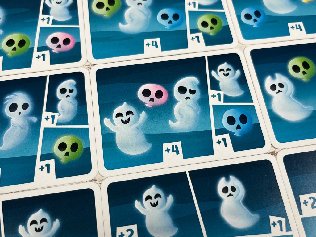 De los componentes, nos reservamos la opinión para la versión final del juego. En el proto, al que hemos tenido acceso, las cartas ya de por sí son de buen gramaje y los acabados nos han convencido. El único fallo es que nos ha costado diferenciar los fantasmas blancos de los azules (al principio). Pero por lo visto, desde Cacahuete, ya han trabajado en ello para que la edición definitiva sea mejor.