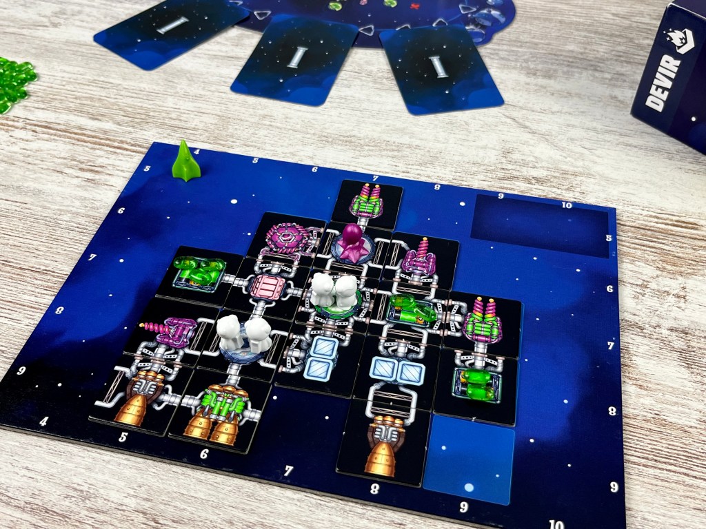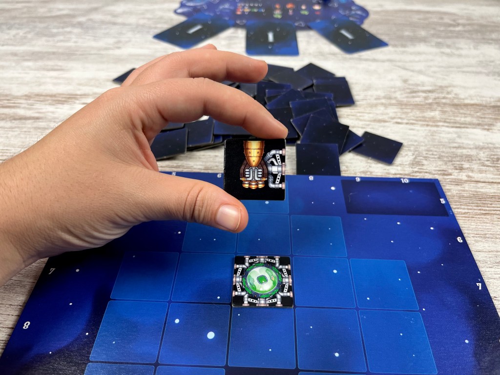 Nos vamos a enfrentar a una frenética primera fase. Competiremos con el resto de jugadores para conseguir las losetas que mejor nos vengan y así construir la nave, esperemos, más resistente. Esta primera fase es caos absoluto, sobre todo a mayor número de jugadores. También podemos encontrarnos con algún tramposo en el grupo que mire las losetas antes de llevarlas a su zona de juego o que cambien las losetas después de ponerlas a pesar de que las reglas indican que no se puede ¡tened cuidado con estos! Esto quizás es un problema del juego porque no vamos a estar atentos a ellos.