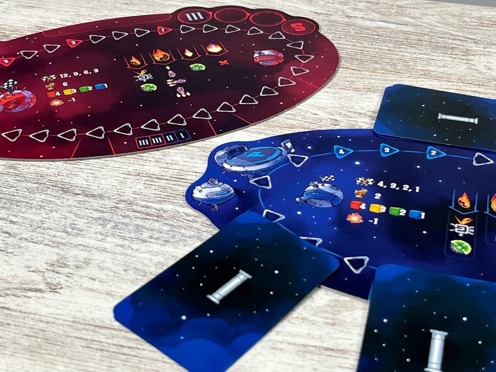 – Las NAVES servirán para representar nuestra posición en el TRACK de puntuación y, además, tendremos una segunda que utilizaremos para viajar a los planetas que vayamos encontrando (en las cartas).