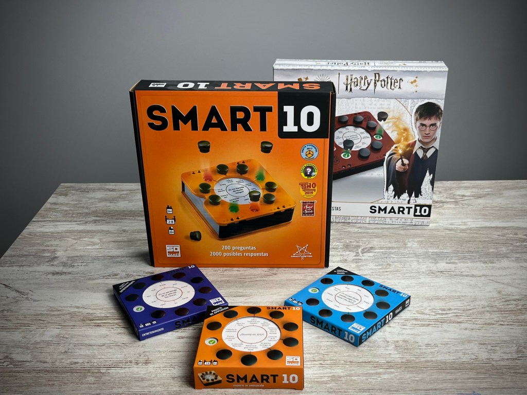 ¡Sí, existe un Smart 10 del universo de Harry Potter! Con preguntas para los fanáticos del universo mágico creado por J.K. Rowling. Al igual que la edición básica, este juego cuenta con preguntas de distintas categorías en las que tendremos que ordenar conceptos o escenas de las películas, adivinar preguntas de verdadero o falso, reconocer personajes o lugares… ¡maravillará a aquellas personas que aún esperamos nuestra carta de Hogwarts!